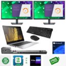 Combo HP EliteBook 840 G5 Laptop i5 Turbo up to 3.6 GHz 16GB RAM 512GB SSD 14 Inch HD Webcam Windows 11 Pro 2X 24 Monitors HP Ultra Slim Dock wireless keyboard Mouse